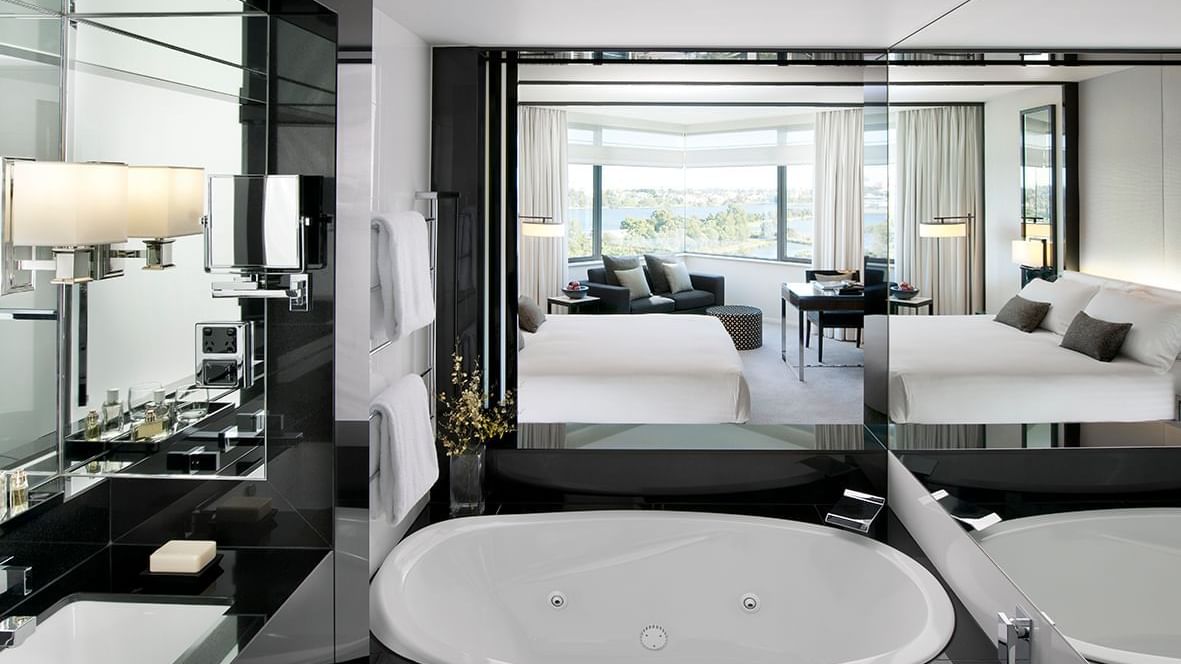 Sleep like royalty after a decadent soak in the spa bath. The Luxe King Spa Room at Crown Metropol Perth has a roomy king bed, comfy sofa and a large desk for work or play. High-tech entertainment and free internet are also included.