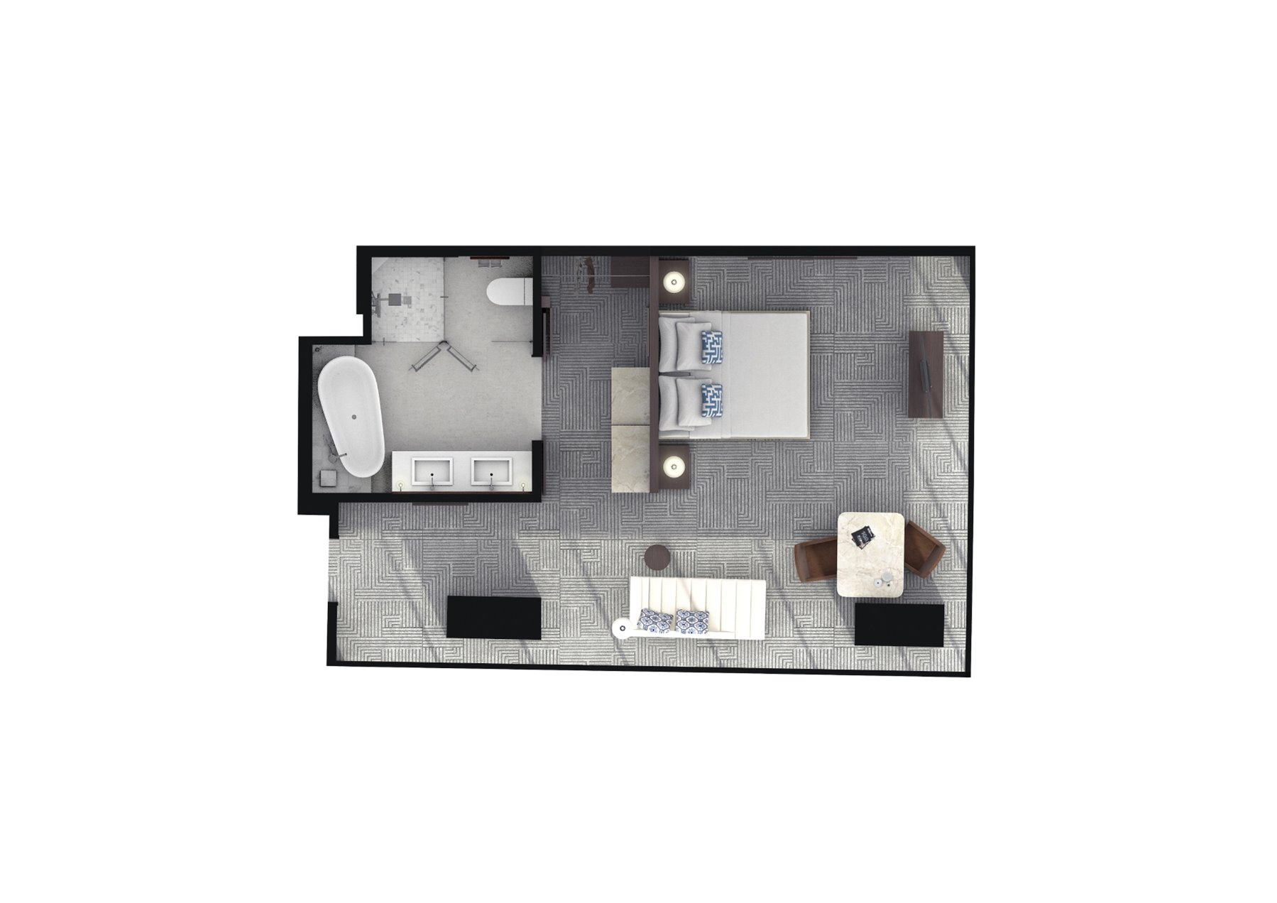 Bright and spacious with two walls of floor-to-ceiling windows, the Studios at Crown Towers feature a welcoming entrance hall, living area, and bathroom with double vanities, walk-in shower and freestanding bath. Whether you’re looking for a relaxed setting for a family break, or a luxury base for business, the Studio offers exceptional comfort and style at Perth’s most prestigious hotel.